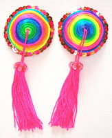 I was contemplating if I should put these pasties by CheesecakeBurlesque under jewlary or clothing (well arent they jewlary for the nipples?) , but I decided to put them here, as they are definitly the most interesting pasties I have seen in a while! I love the spiraly rainbow vibe they have, if your into pasties these are the sweetest ones by far.