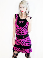 For a going out look, this hot pink zebra yoke and ruffle dress is perfect, its got loads of little details such as the zipper trim around the yoke and a big pink zebra print bow.