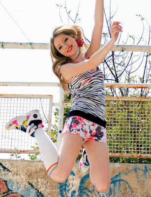 Another hot little piece are these stretch neon splatter hot pants,