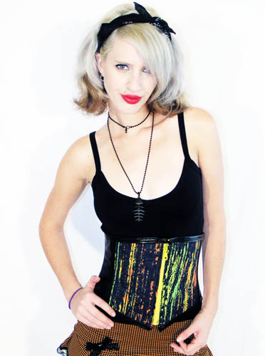 Thinking of a vixen look? try this neon green and skull print corset, it always reminds me of the