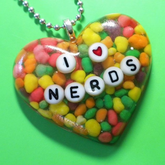 This next artist does such pretty things I had to feature two of them, you have to love this "I love nerds" necklace (oh revenge of the nerds anyone?) and this rainbow road pendant which I just love for its fantasticly radiant colors.