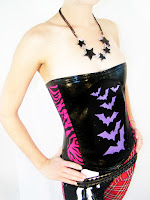 Its time for corset of the week! this time im listing this uber gorgeous magenta zebra and leatherette bat print boned corset, fully inspired by death rock this piece is seriously a one of a kind, guarantied to make you stand out in any party.