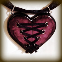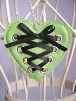 I also have this sweet as candy green leather and laced corset heart necklace by veronablack which I love for the bold and unusual color choice and the grommets embedded in the heart itself. its yummy!