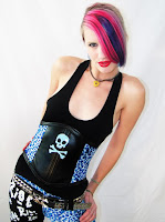 you know leopard print is my favorite, so obviously I couldn't resist making a corset out of this blue leopard print fabric! I added a skull patch on the front and now its simply adorable.