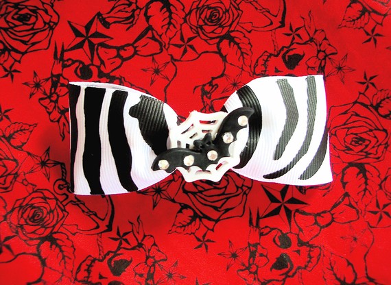 zebra bat and spider web hair bow by punkup betty.You feel like you dont have the hair to match your outfit? no worries! you dont have to go platinum blond or raven black to make this contrast look complete!
