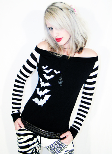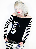 black and white stripe and bat long sleeve top, with a sexy off shoulder cut that can be worn all day long and through the night too!