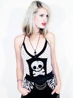 polka dot and baby skull print triangle tie back top. its fun, its got a great fit and its now on my special holiday reduce price ebay auction sale, so you can get it for a bargain price too!