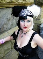 classical black and white brocard waist clincher, with a classic black on black flower print satin brocard and black leatherette. I added white corset ties on the front for contrast and ruffled lace lining on the top and bottom of the clincher for accentuating the waist line.