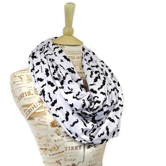 Scarfs are an awesome way to incorporate a cool monochrome item in your wardrobe! check out this street wise mustache print scarf from ForgottenCotton,