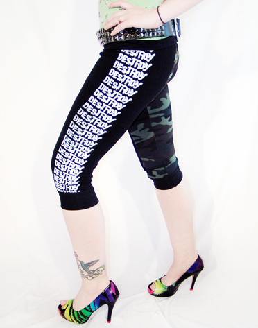 Always up and ready for action, these camouflage and destroy print capri's are the perfect little item for the hotter days, super comfy and curve hugging in all the right spots! I paired them with this green skull and heart print lace camisole top, super cute and perfect to add some fun to your closet!