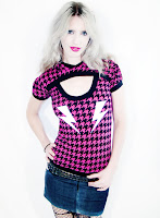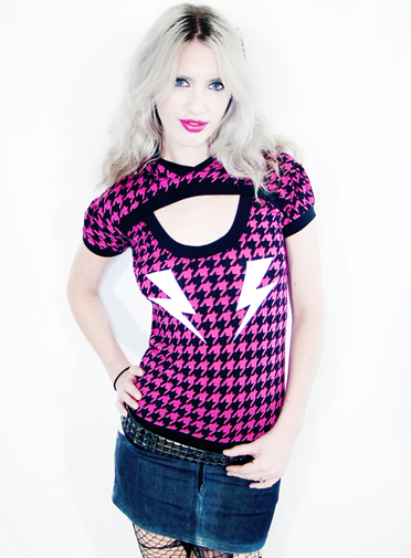 Check out this uber sweet pink hounds tooth & lightning print short sleeve hoodie top! its oh so sute and comfy, perfect for a day out in the sun.