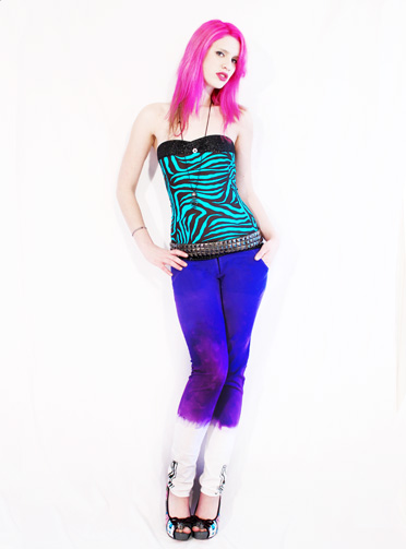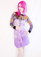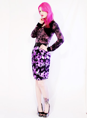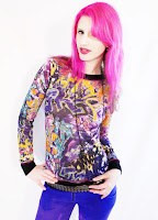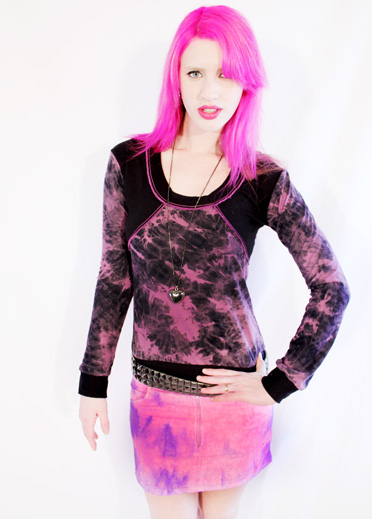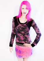 First up, is this awesome purple decay zombie stitched long sleeve top, perfect for these days, its lightweight but still keeps you warm. I paired it with this sweet neon pink & purple splatter tie dye 4 pocket denim mini skirt, I love the bright colors and the laid back comfort it gives your look!