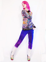 need something flashy but for colder days? This graffiti print long sleeve zombie stitch scoop neck top will definitly do the job! pair it with these amazing ombre purple white dip dye skinny pants (with zippers printed on the ankles, how cute is that?) and your ready to go!