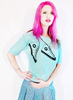 If you wanna turn the heat up for night time, you have to check out this amazing turquoise zebra & glitter print tube top with a zebra button on the front. its super flattering and the design envokes a 70's Debbie Harry vibe.