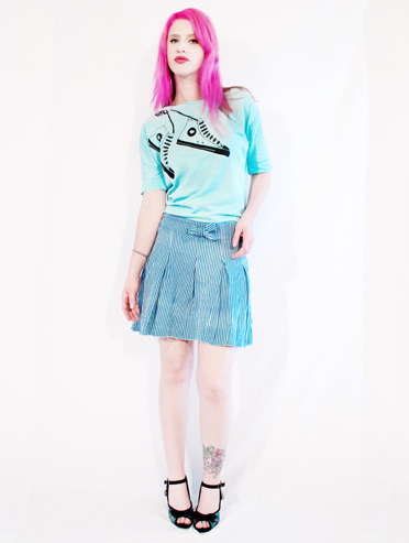 I love this turquoise set I put together, its as sweet as jelly beans! enjoy the effortlessly cool look of this stripe & sneaker print over sized 80's style boyfriend T, it looks amazing with a pair of skinnys or a sweet denim mini skirt, like this sailor stripe pleated cheerleader mini! I also added a super sweet bow on the front to complete the look:)