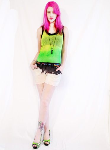 spring for me is all about fun bright colors (well, when dont I use fun bright colors?!) and this top shows it without any problem! I dip dyed this fishnet racer top in acid neon lime & yellow, the mix is superb and will def get you noticed!
