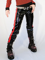 I also have these super awesome red and black vinyl pants that totally inspired by the car racing suits, they are simply to die for and Ill be more than happy to make you these in any 2 color combination you like, just give me a shout out of what you like!