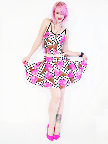 ice cream pop circle skirt is pure fun, super breezy and perfect for a fun summer look! add a pair of pink high heels and a slouchy top and your just too cool for school:)