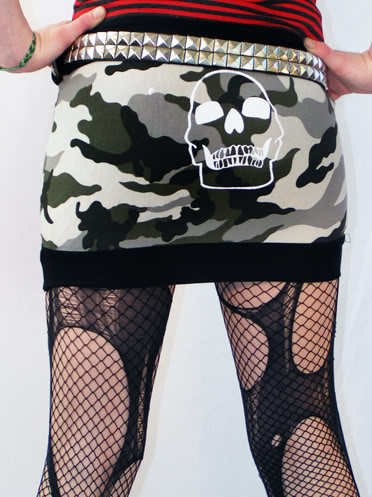 This awesome streetwise bleach and skull print zipper mini that you just cant miss out on and an urban camouflage and skull print mini to rock on with!