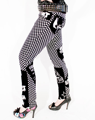 Try on these checkered & skull patch skinny pants for a new outlook on the world! these are a serious unique item that will let you stand out in the crowd, while allowing you to attend your favorite shows - this fabric is super durable for any crowd surf or mosh pit around.