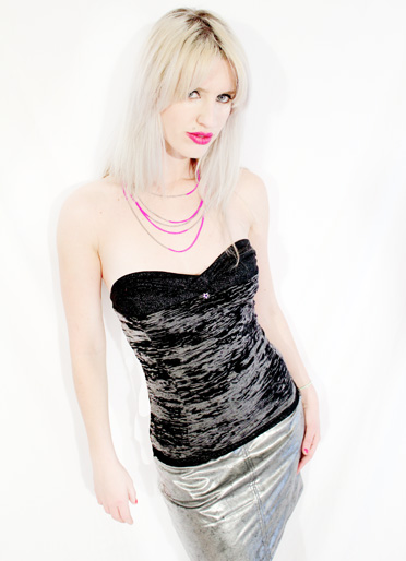 Check out this sexy little duo - this sweet 70's inspired strapless heart shaped bust top ( I can just imagine this one on Debbie Harry in my dreams!) , made from spalteer print jersey and glitter jersey, I gave it that awesome last touch with a star stud on the front.