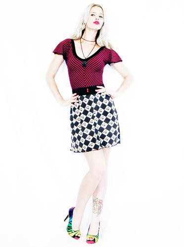 Another fun in the sun item is this argyle skull print high waist mini, its full of rocker style with a high fashion - high waist flair, and I just had to add these red pyramid studs on the front to complete the look:)
