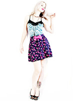 I paired it with this awesome skull leopard & splatter print high waist pleated skirt, I added a big pink vinyl bow on the front to complete the look. this skirt will look adorable with a pair of pink tights to keep your stems warm on a chilly day!
