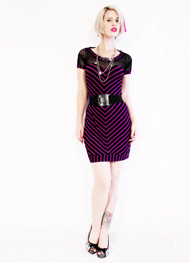 Im totally in love with this purple & black V stripe dress, with a top part made out of glitter fishnet fabric and a killer fit, this hot little dress is a must have item, perfect with opaque tights for winter and as if for summer!