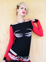 and the second is its wintery sister, the red black offshoulder skeleton hand print long sleeve top.