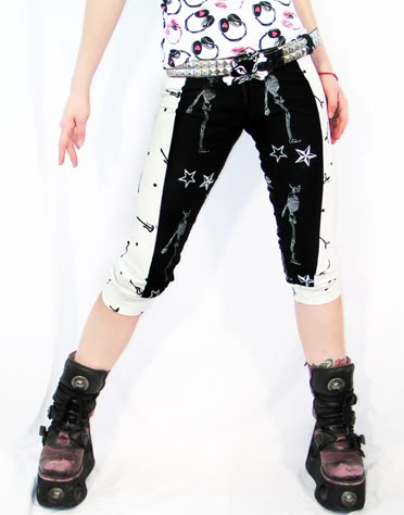 These super comfy skeleton guitar and star print capri pants are a must have, as they made out of the softest jersey ever, and they are a great item to lounge aound the house with or to go out with a cute black top.