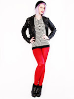 I chose to pair it with this super hot red & white polka dot print mini skirt. its got a retro style high waist for that modern pinup girl look, and its made out of a super soft lightweight Lycra that works amazing with leggings for spring and isnt too constrictive as is in summer.