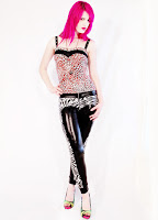 this sweety is also paired with these sexy zebra & black wet look spandex tights, the perfect little item for partying with vintage rocker style! I added a large metallic zipper on front to give it that extra attitude every girl wants!