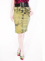 I paired this top with this awesome acid decay green yellow button down drill pencil skirt. Its super fitter, and sexy while the button opening and the color give it a street wise effect. this is the perfect skirt to wear with your favorite flip flops or sneakers as well as your favorite peep toe heels!