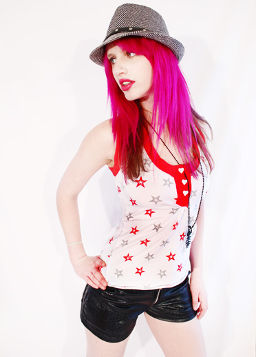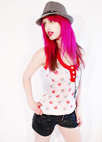 first up in my collection is this awesome red star &heart button gathered bust racer top.