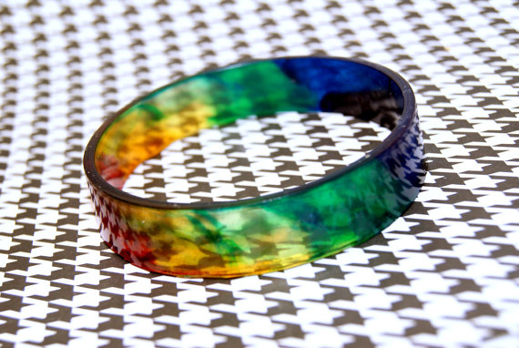 Try on these tie dye resin bangle by Lunaricsales for a fun 80's vibe,