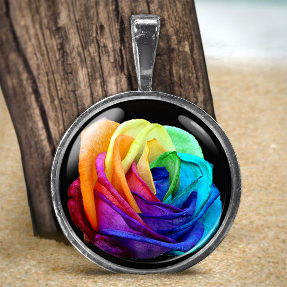Check out this beautiful rose dome pendant by artintheround - I love the classy rose mixed with the zany colors!