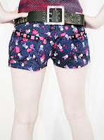 Cant you just imagine yourself hanging around the beach with these super sweet puffer shorts? they have an uber cool leopard skull and splatter print, and I added 4 pockets for extra comfort with pyramid studs on the back to cuten the look.
