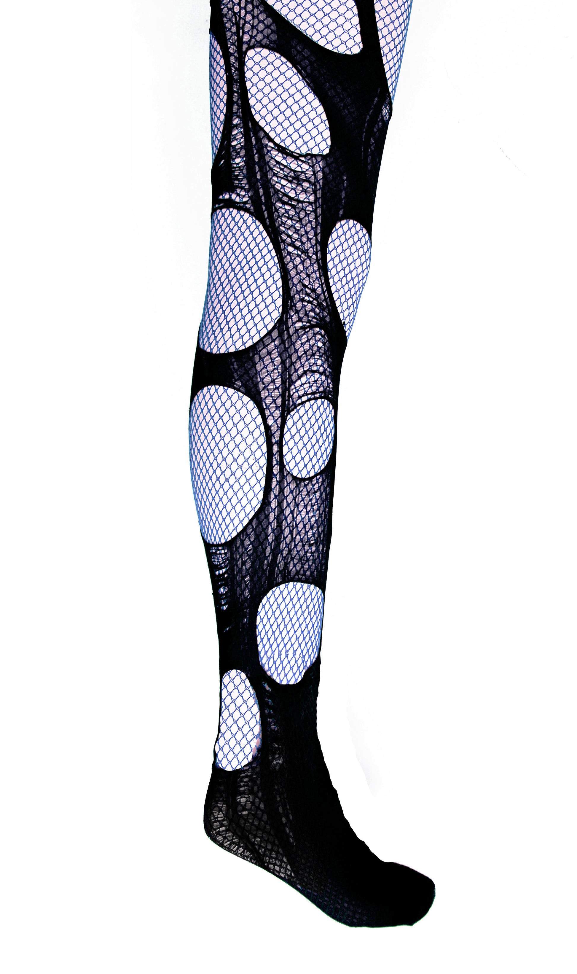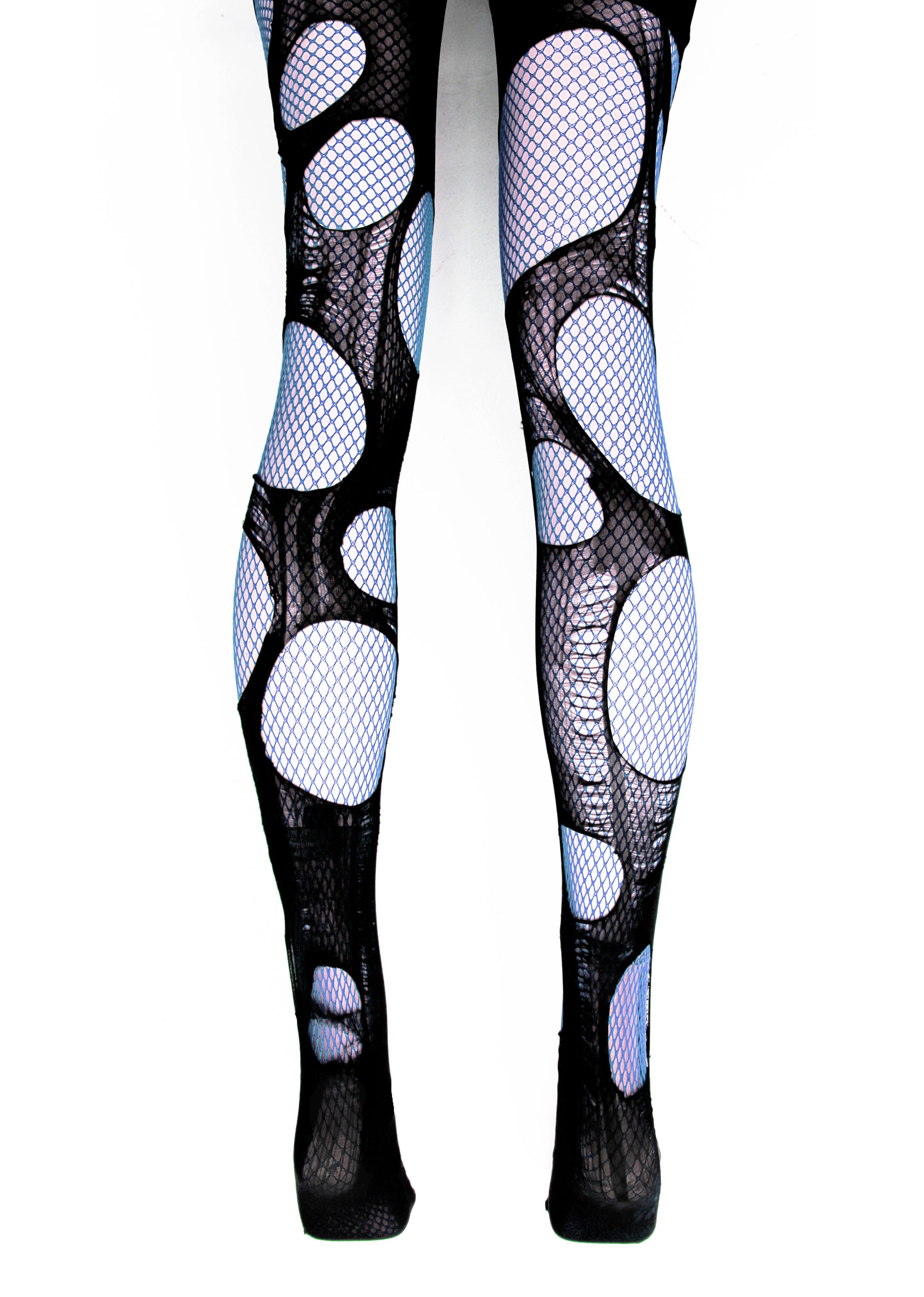 pure rock star tights made from double layered tattered and torn fishnet tights.