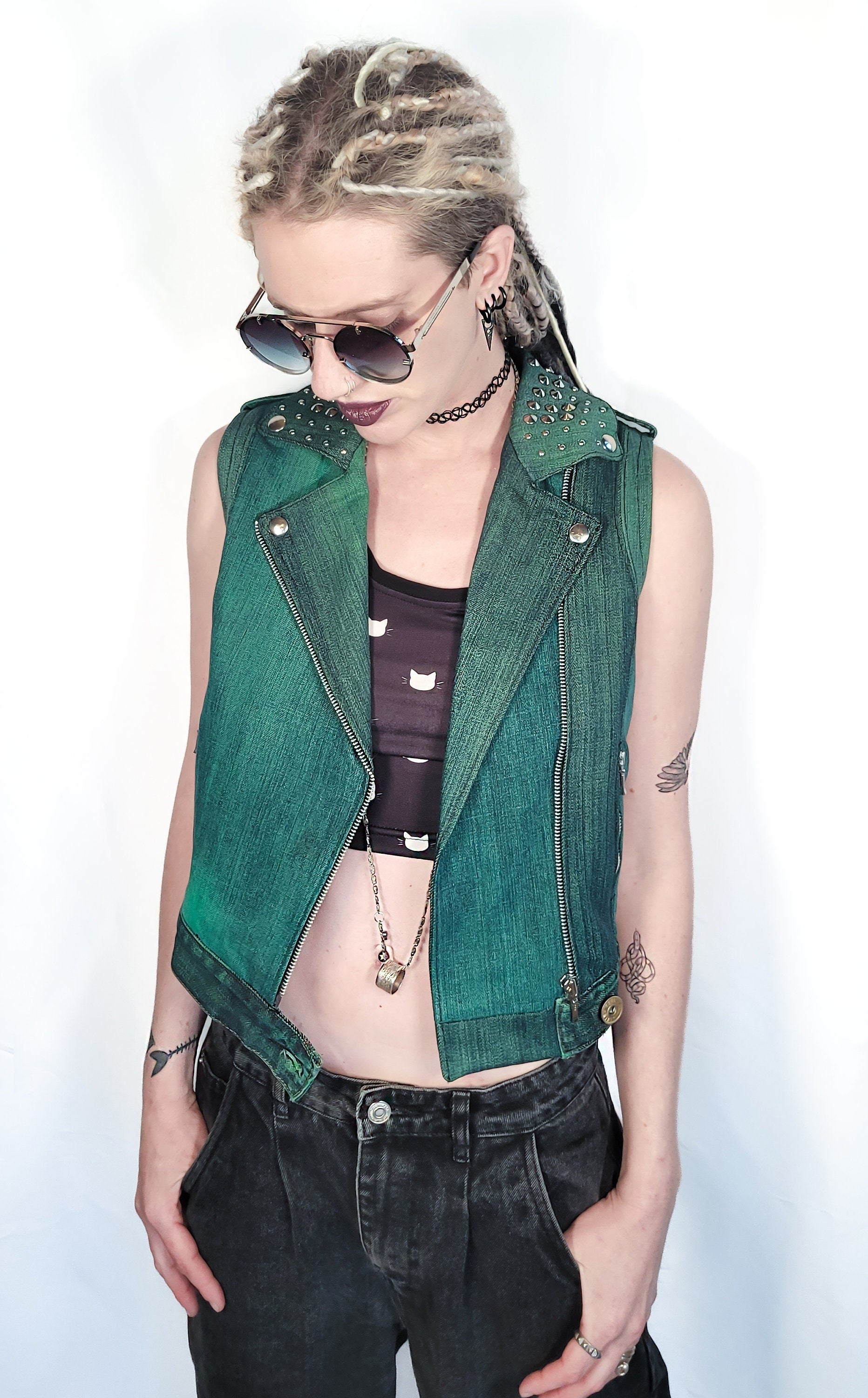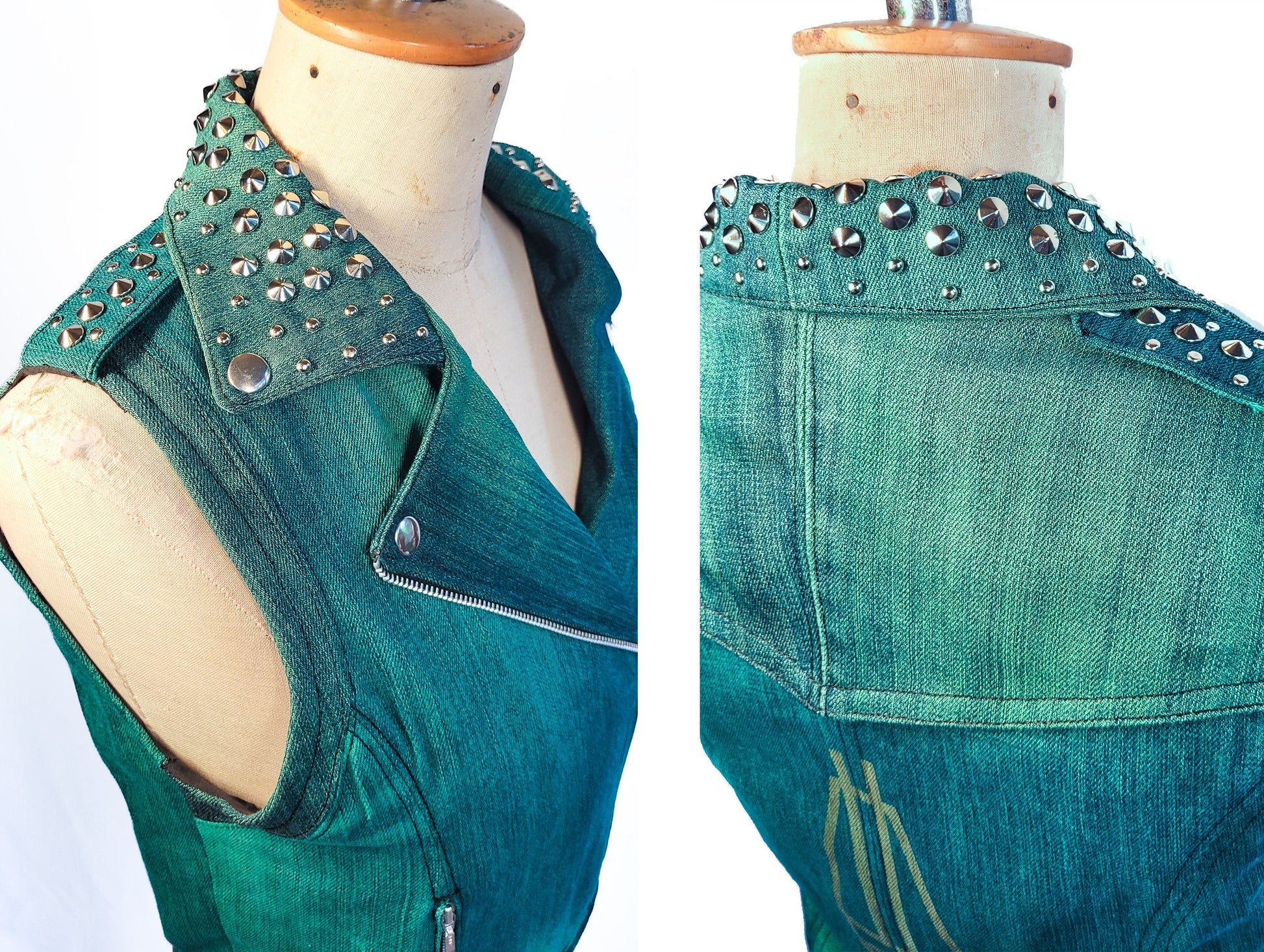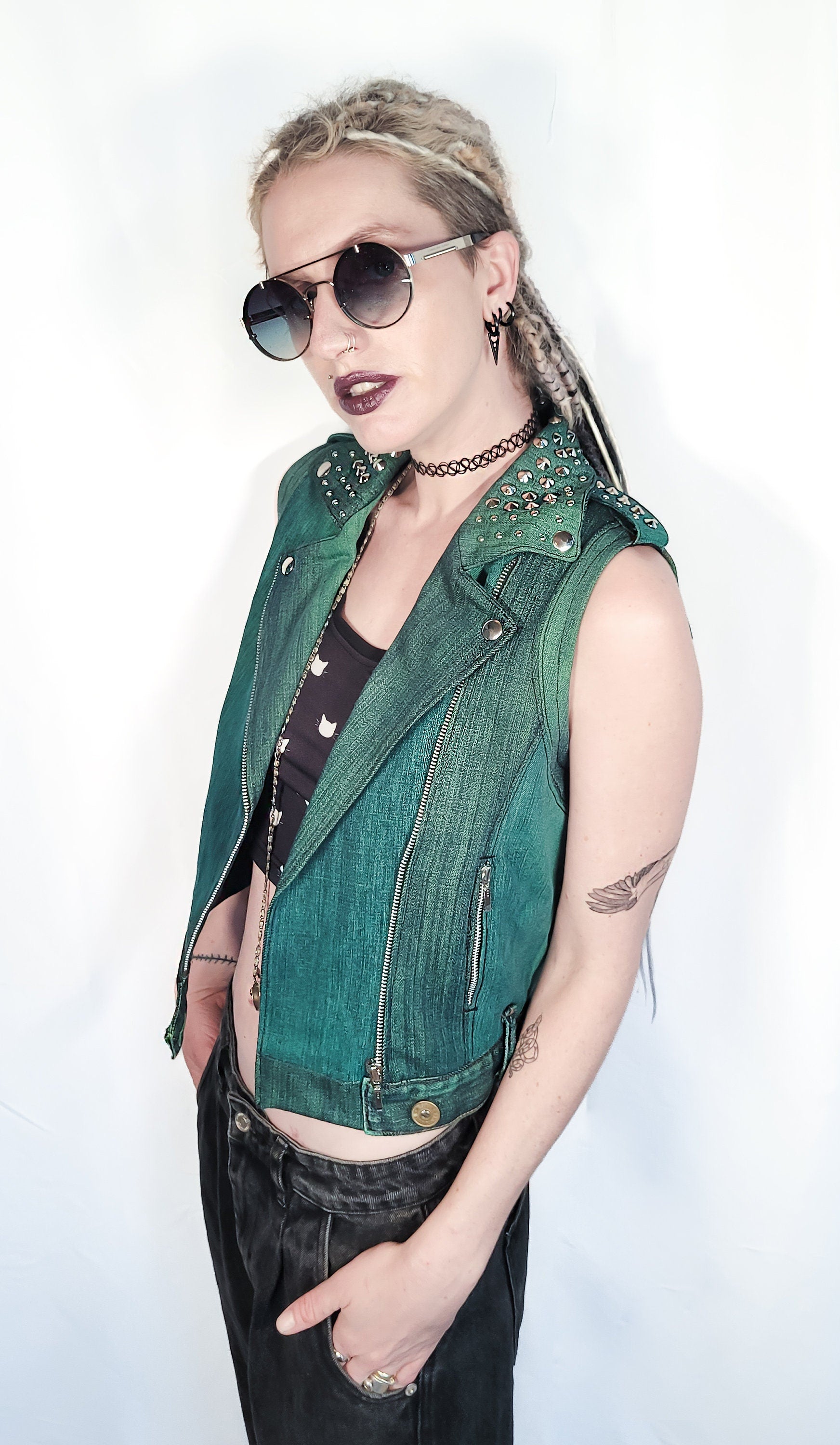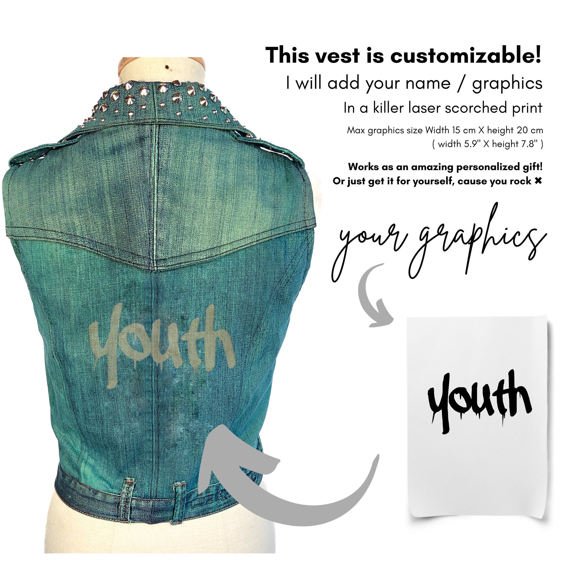 Studded n Dyed denim biker vest | Custom vanity print to your request