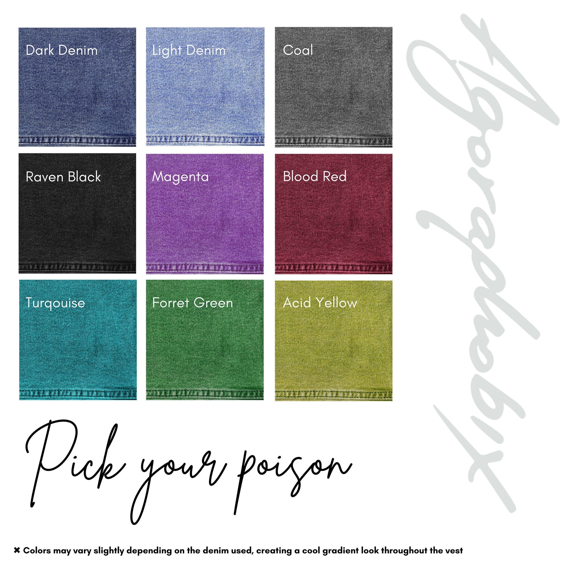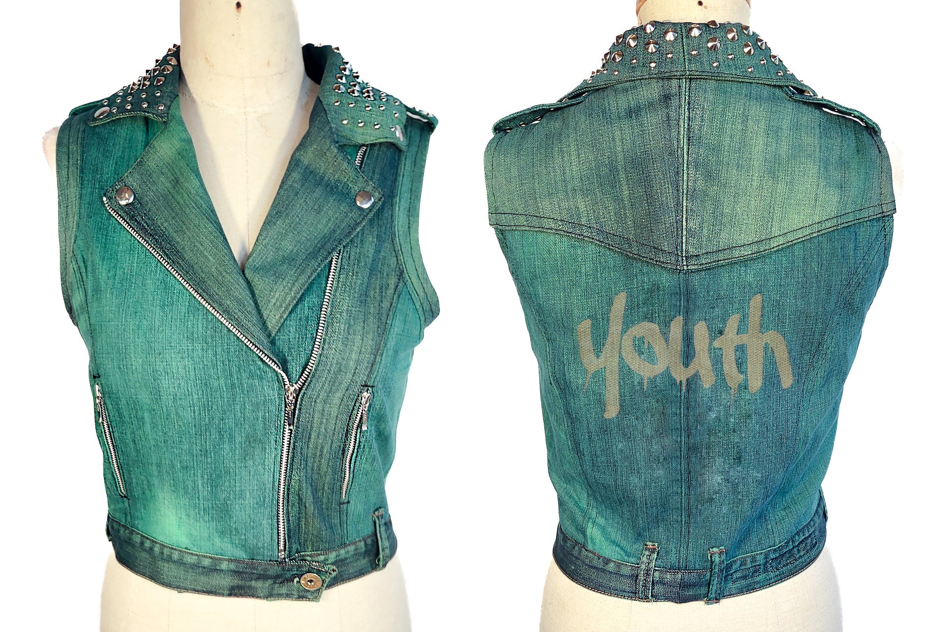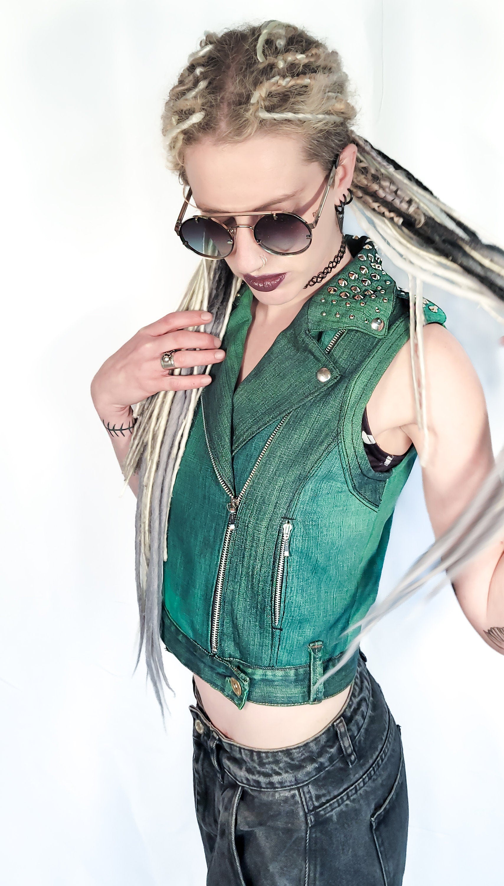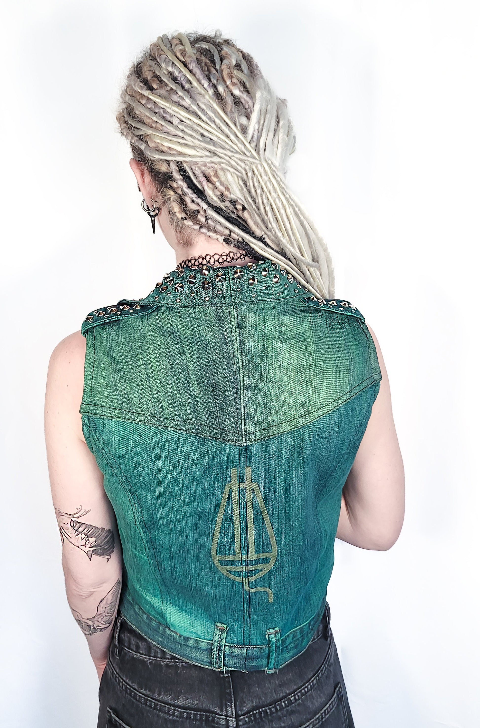 Studded n Dyed denim biker vest | Custom vanity print to your request
