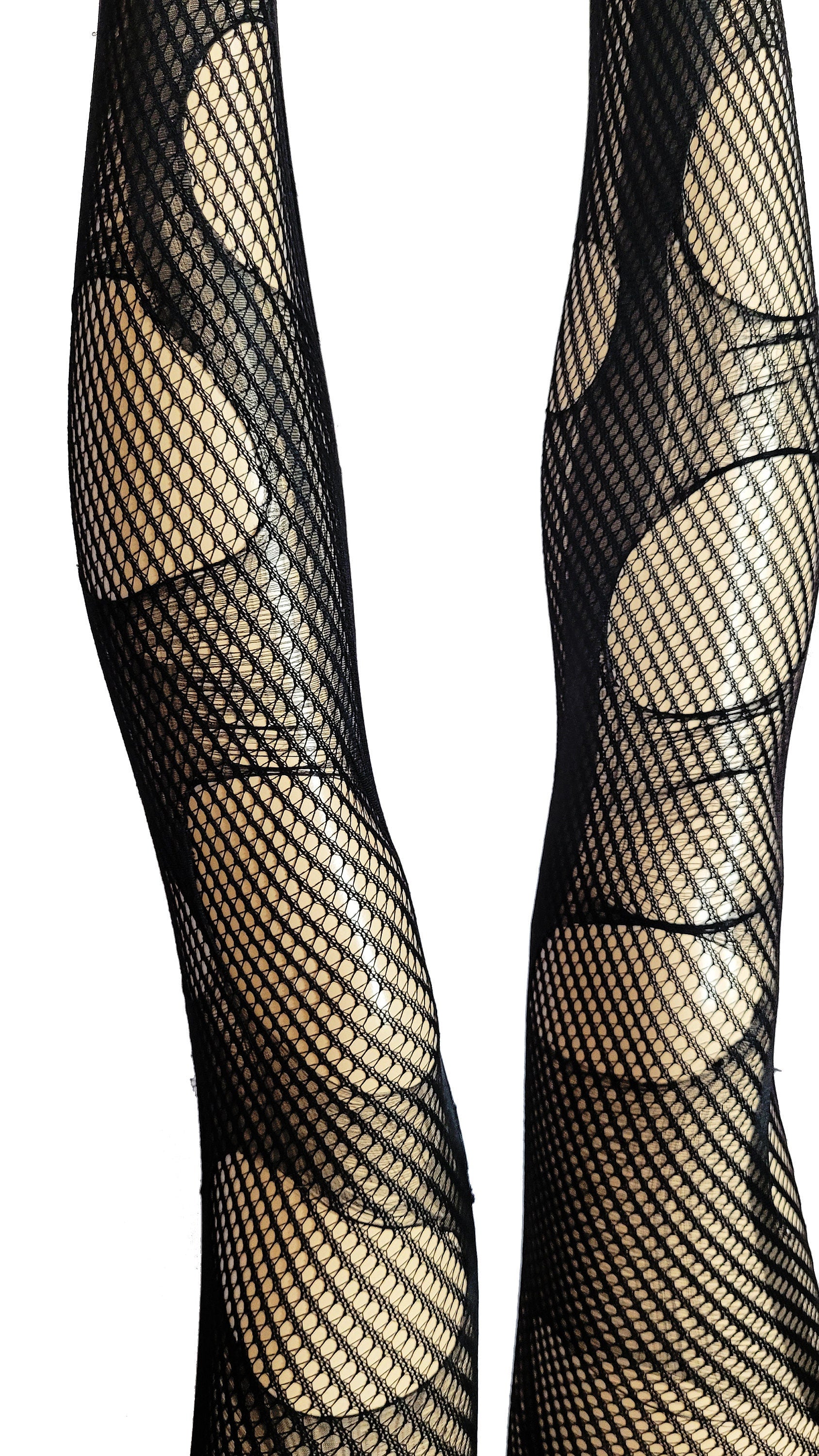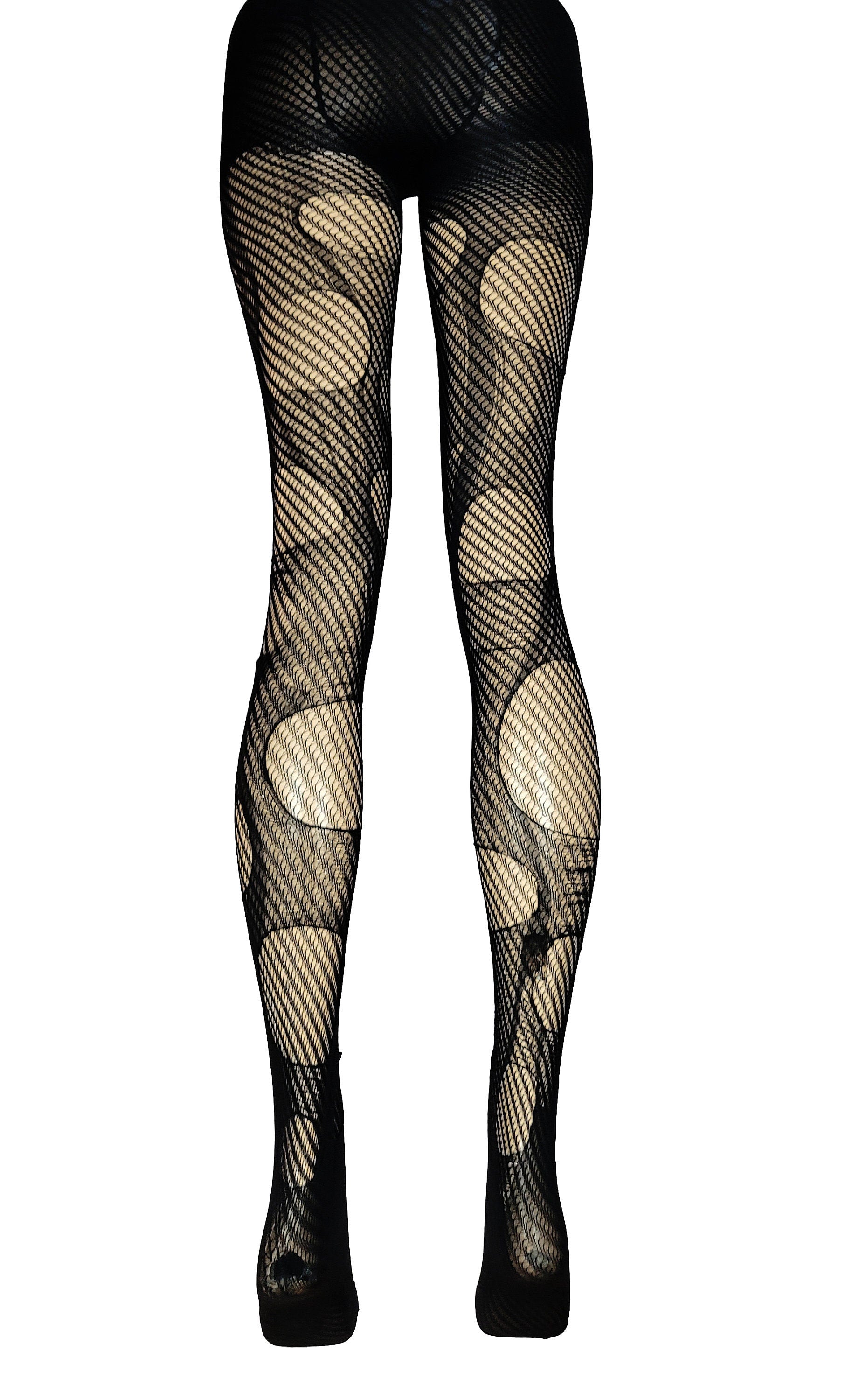 Swirl fishnet tights with an over layer of black torn tights, these look like they have been weaved by a spider 🕸️