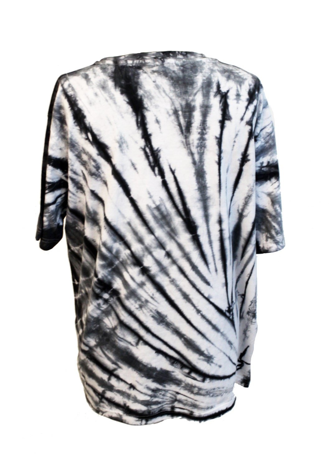 100% cotton t shirt for a light feel, Perfect fit, tie dyed dipped in ink black creating a black smoke effect pattern.