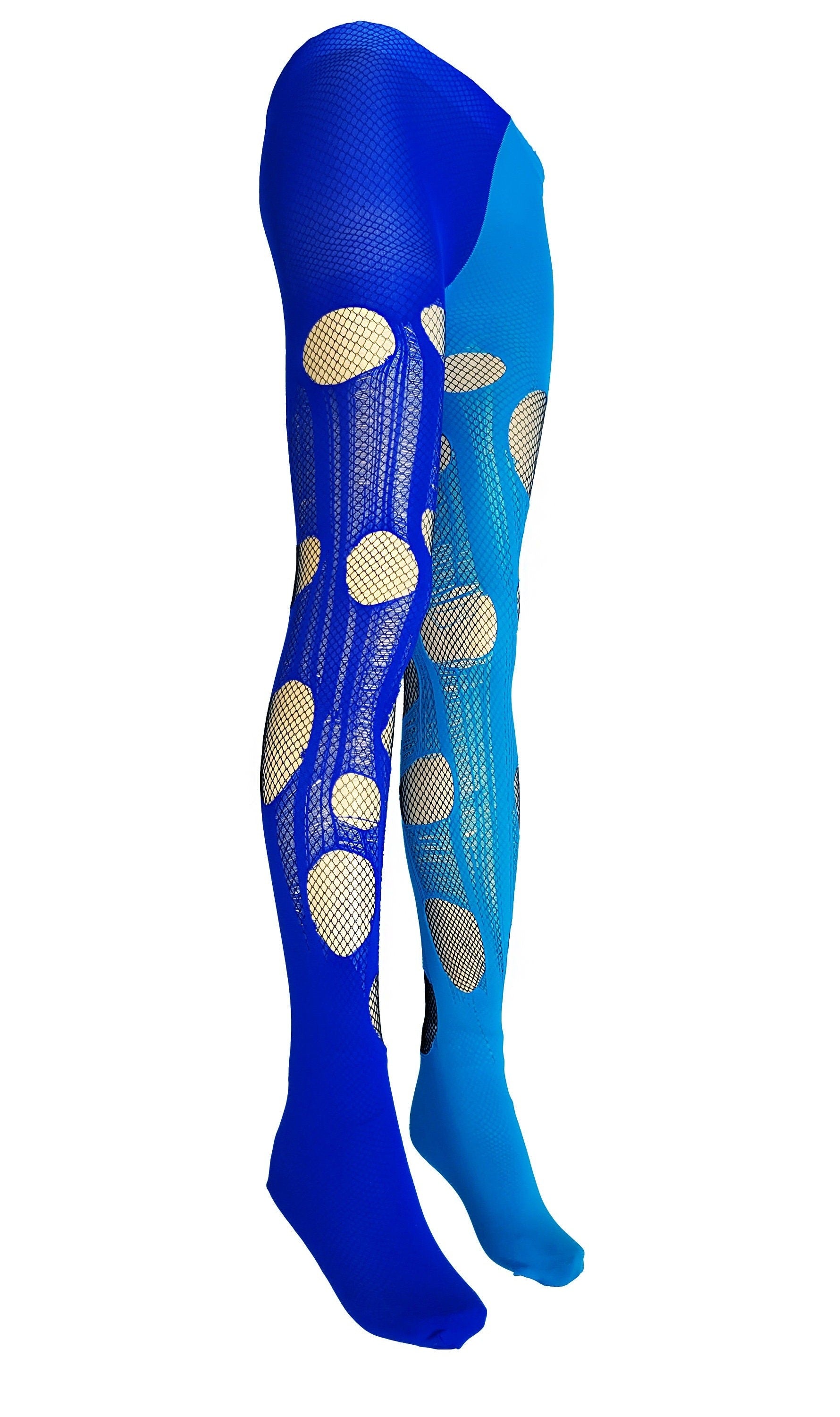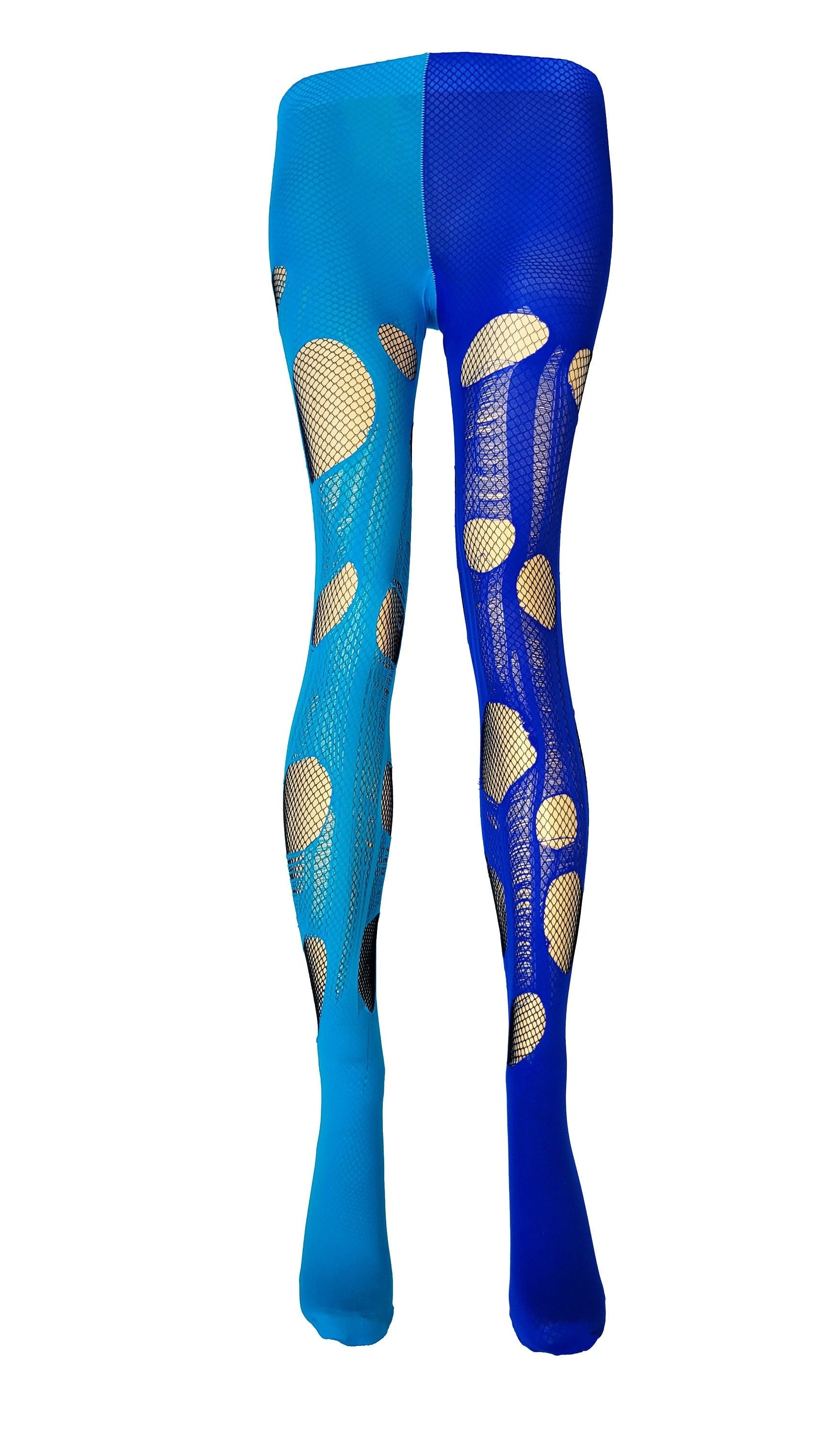 My classic tattered n torn fishnet tights in vibrant half n half Blue & Turquoise .