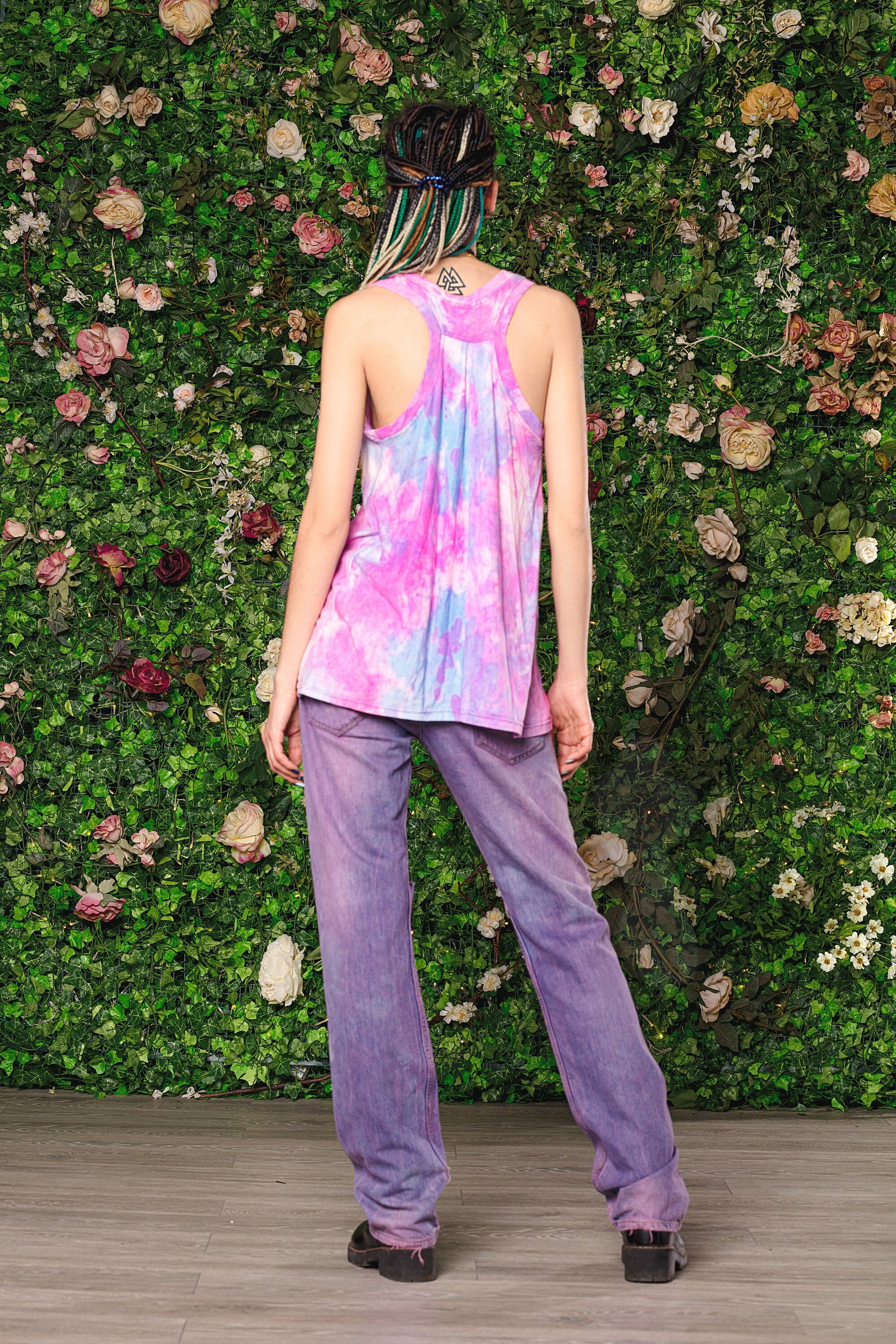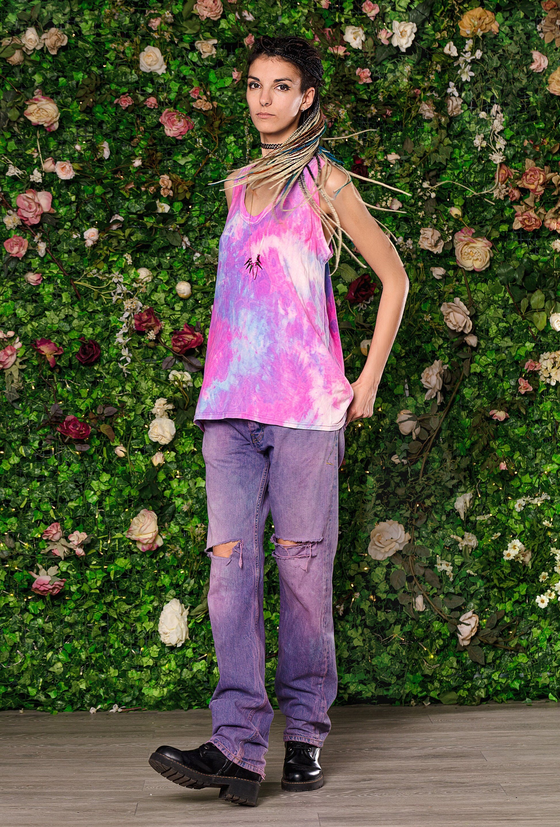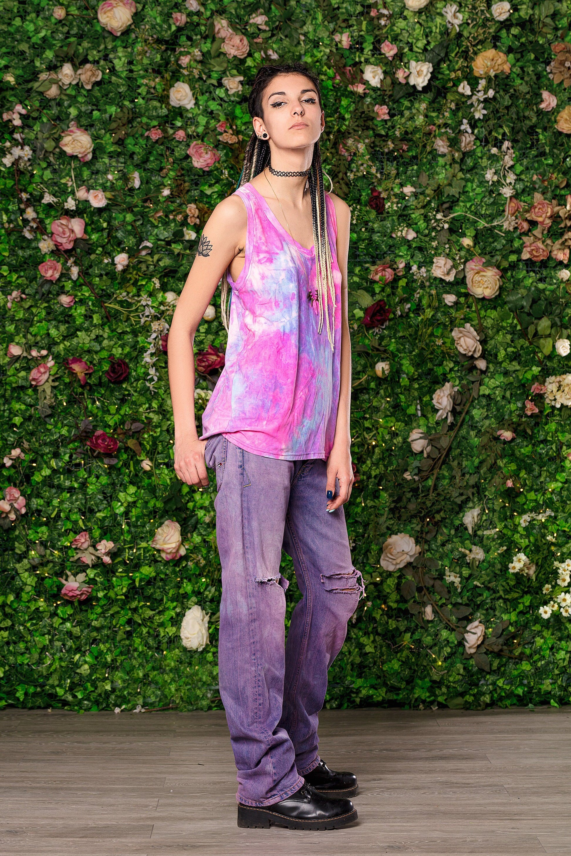 Slouchy boyfriend jeans fit dyed in a plum purple, Ripped to perfection on the knees for that perfect grunge look.